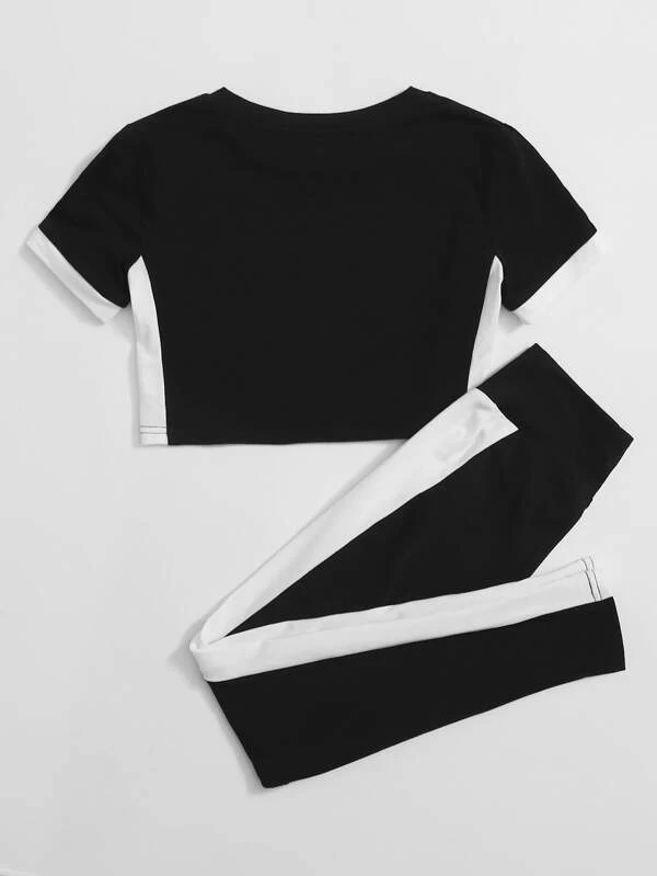 Girls Contrast Panel Top & High-Rise Leggings Set S