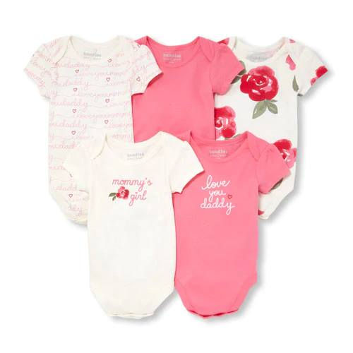 Baby Girls Short Sleeve 'I Love Mom' Bodysuit 5-Pack P