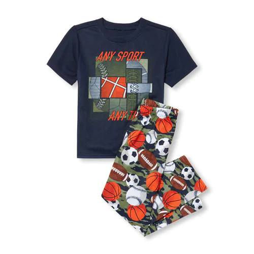Boys Short Sleeve 'Any Sport Any Time' Sports Top And Print Pants Pajamas